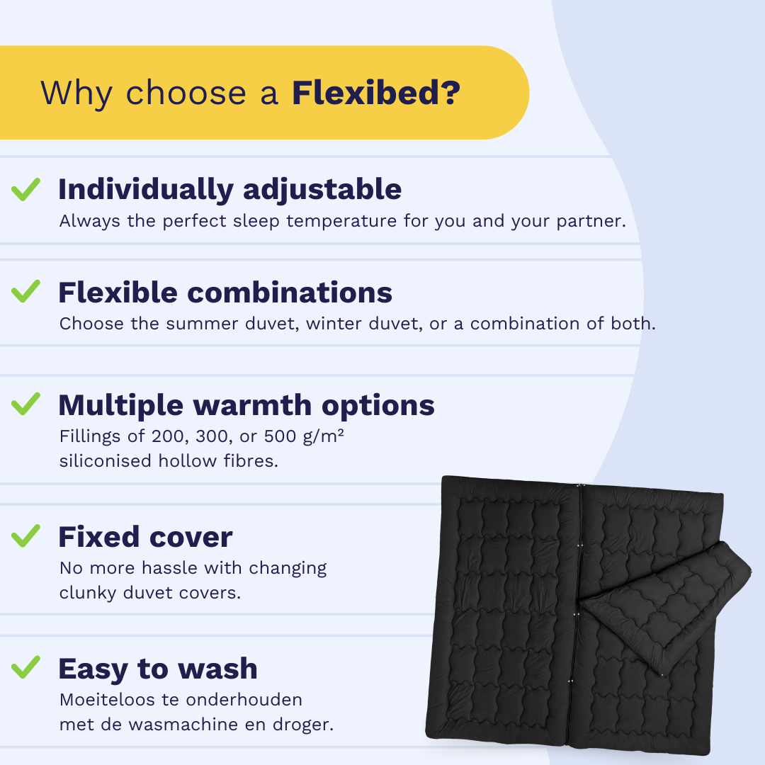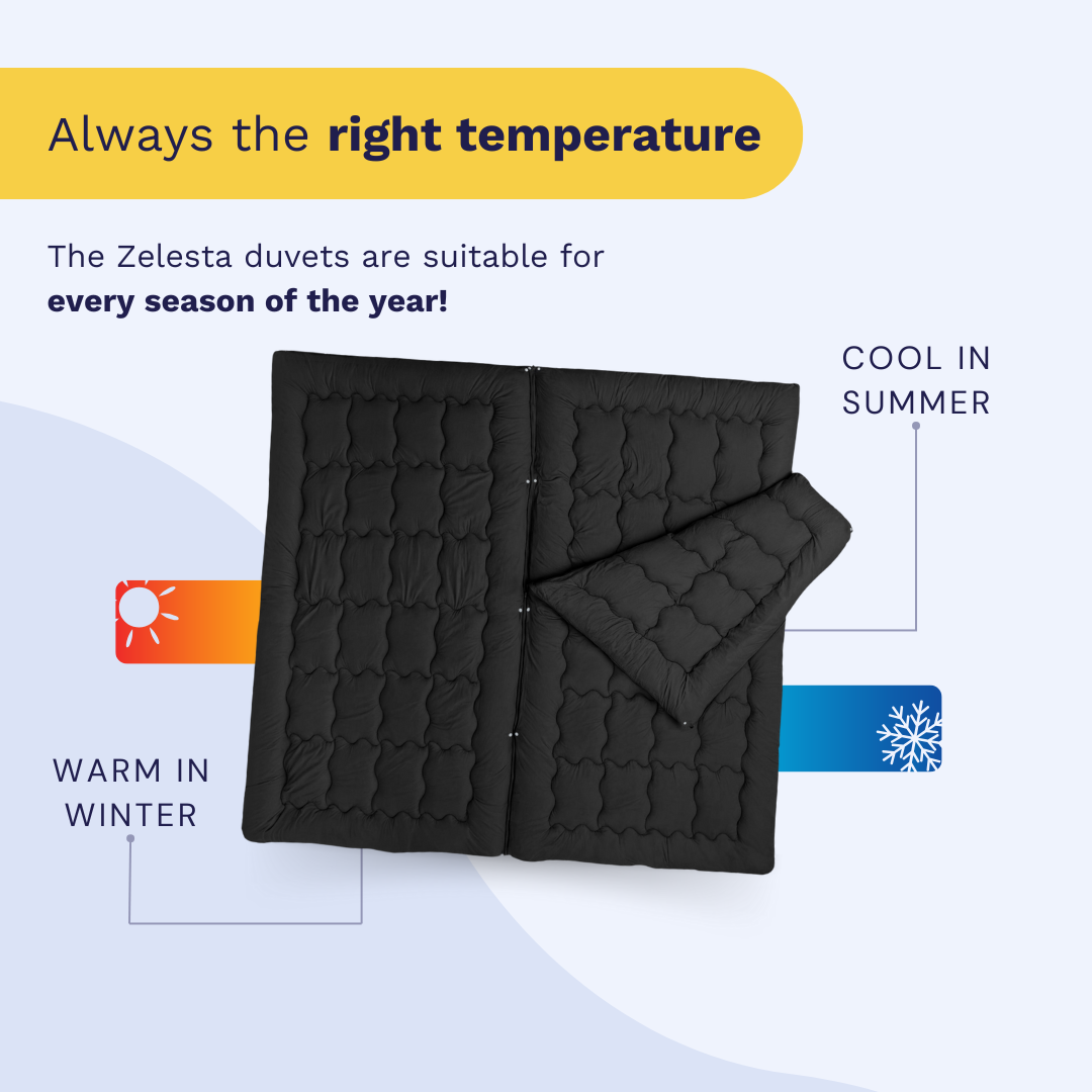 Our 2-in-1 duvets are suitable for all seasons. You only need one duvet for the whole year.