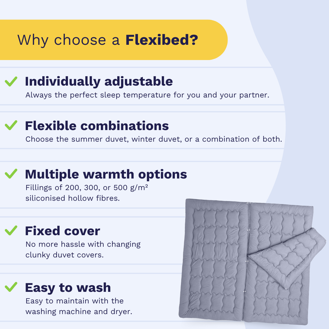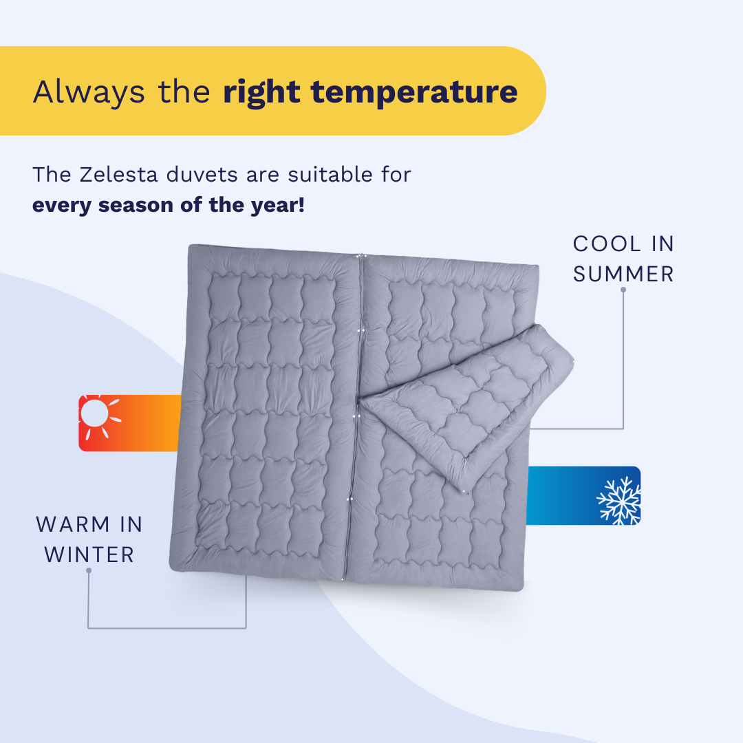 Our 2-in-1 duvets are suitable for all seasons. You only need one duvet for the whole year.