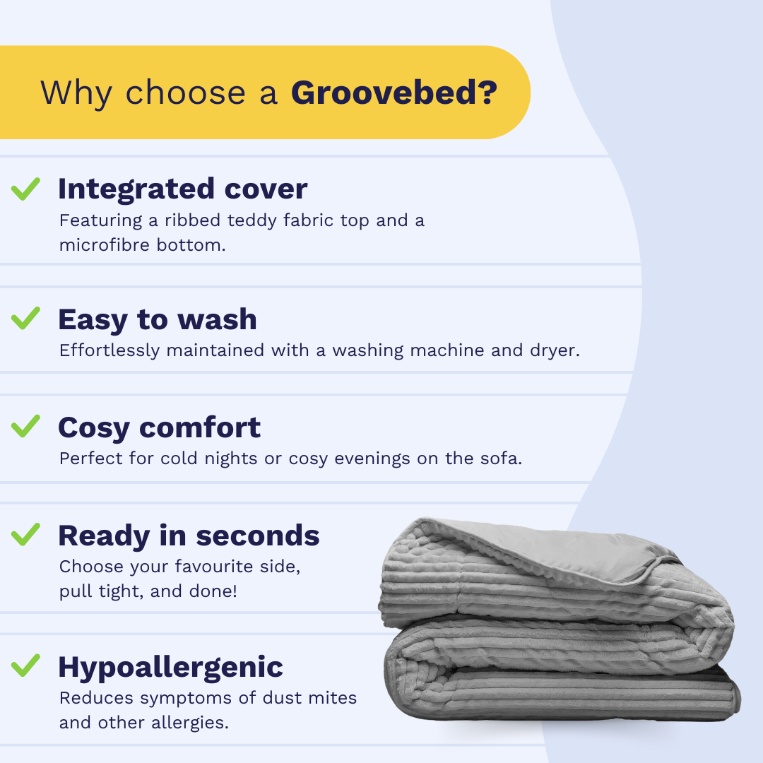 A super trendy duvet with a fixed cover – made from ribbed teddy fabric. Experience the convenience of a washable winter duvet, perfect for multiple seasons.