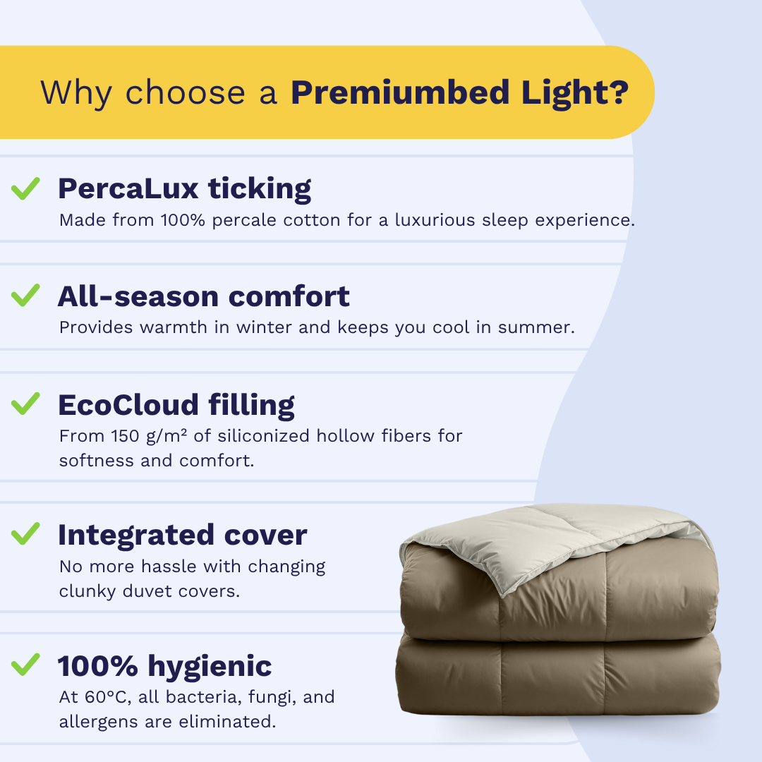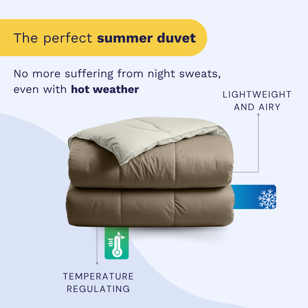 Our 2-in-1 duvets are suitable for all seasons. You only need one duvet for the whole year.