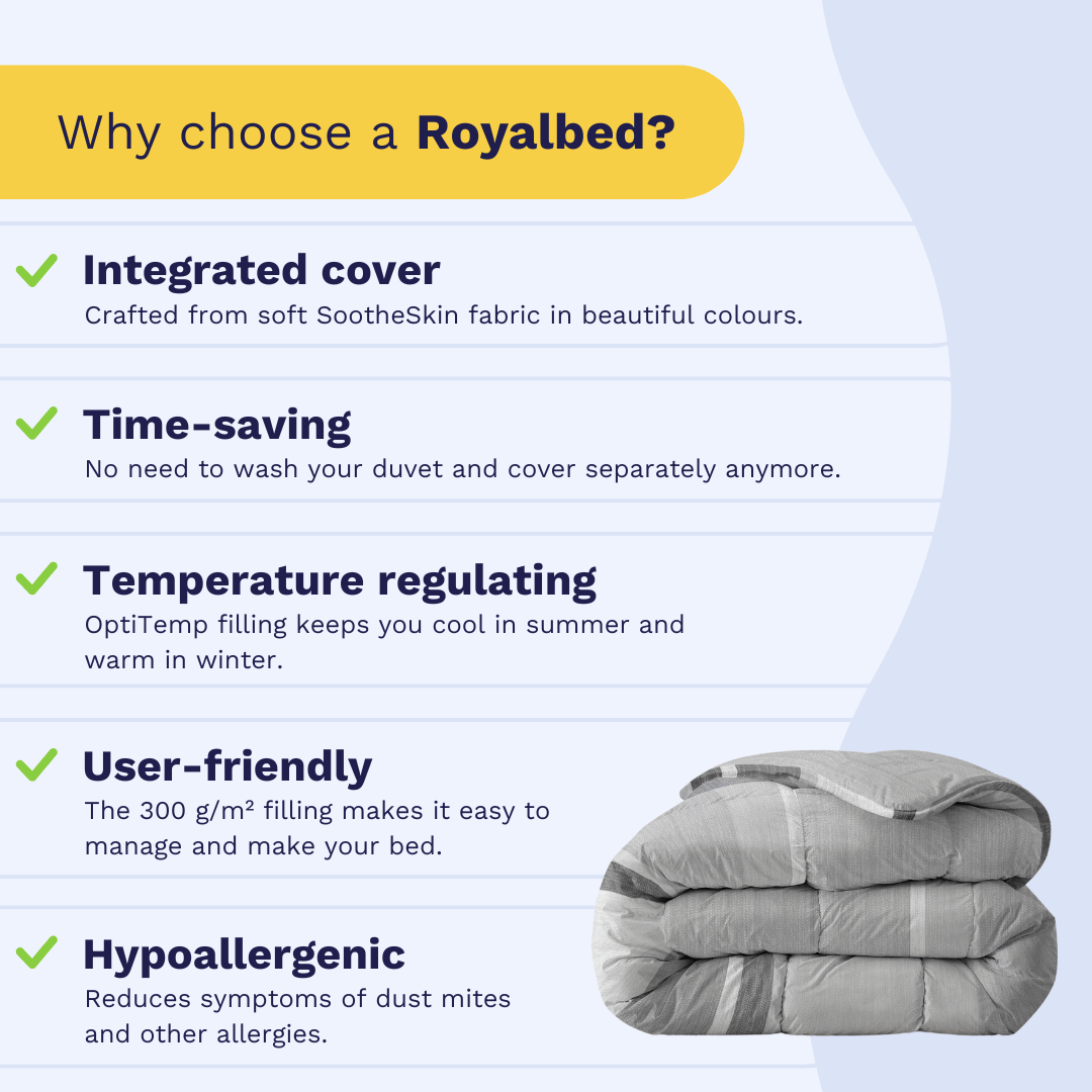 With our 2-in-1 duvets, you can make your bed in no time and avoid the hassle of duvet covers.