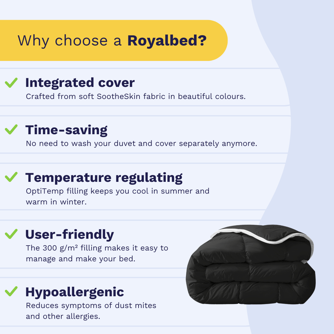 With our 2-in-1 duvets, you can make your bed in no time and avoid the hassle of duvet covers.