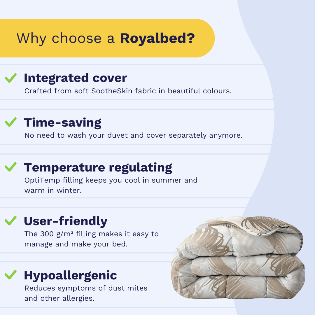 With our 2-in-1 duvets, you can make your bed in no time and avoid the hassle of duvet covers.